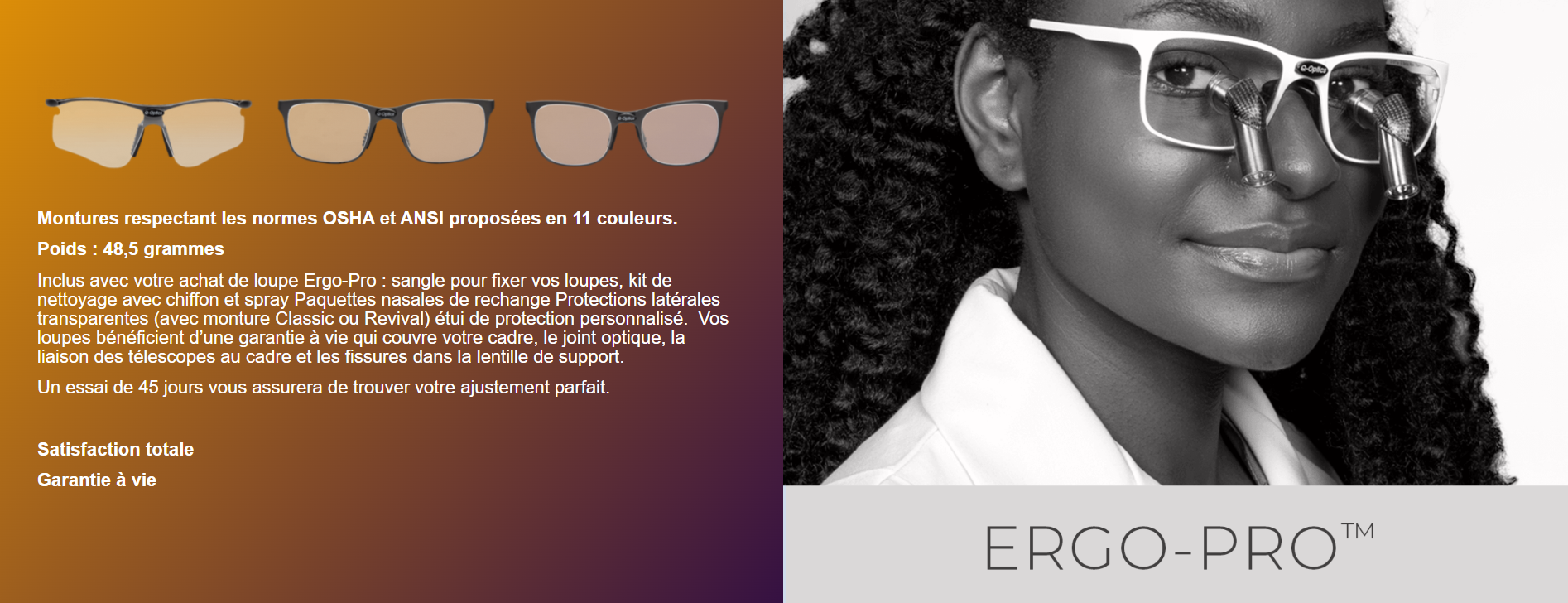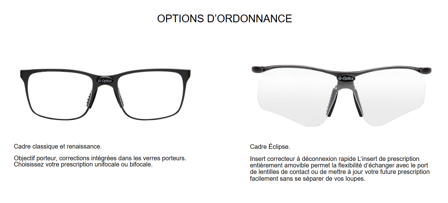 • Les deux verres seront sur la base de la prescription ophtalmique.