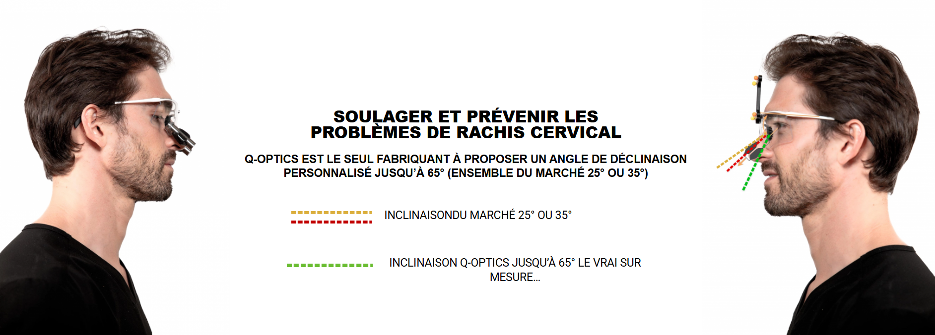 Respect de votre prescription, Vertex, Hauteur pupille, Distance de Travail personnalisée, Angle de déclinaison de 0 à 65°, Degré de convergence, Hauteur du télescope (centre optique), Distance inter-pupillaire