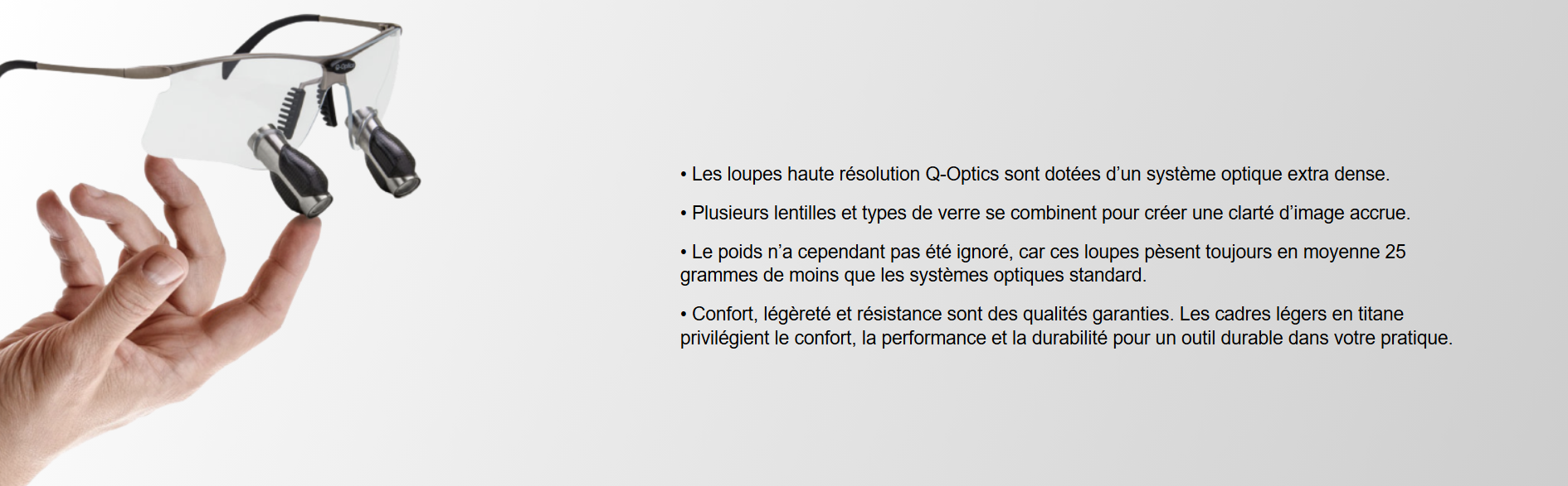 • Les loupes haute résolution Q-Optics sont dotées d’un système optique extra dense.