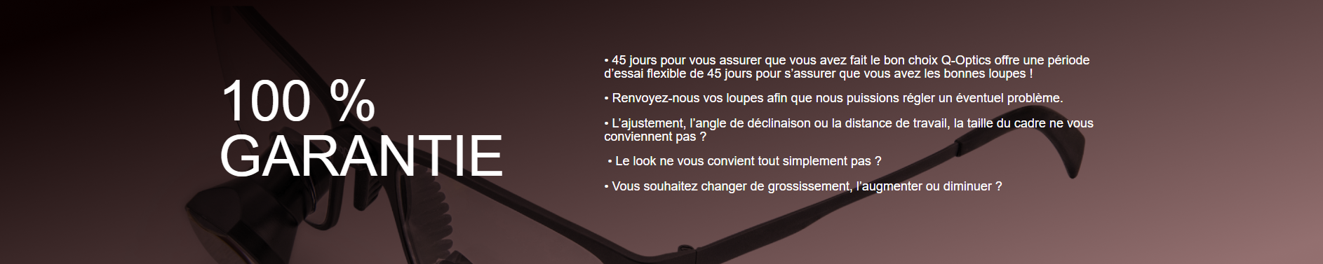 Quality-Optics maitrise le processus de fabrication de ses montures et de ses optiques permettant de vous assurer une garantie à vie.