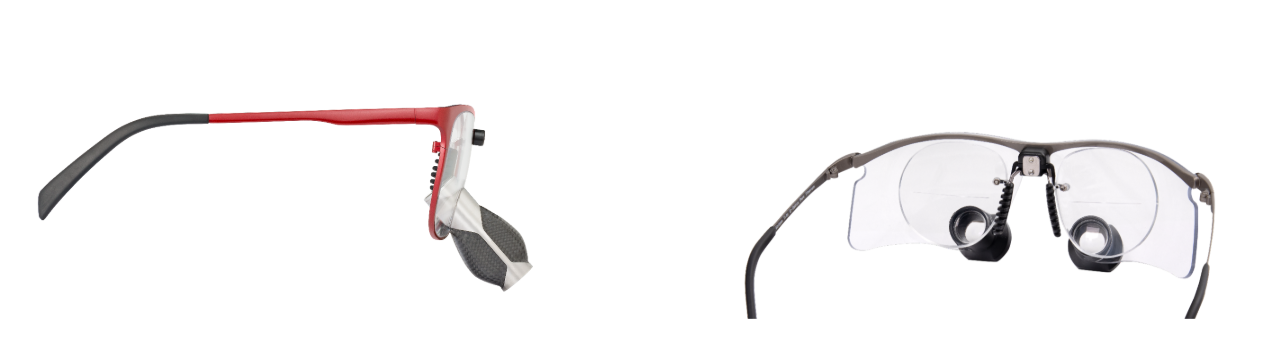 • Avec ces montures, la correction est sur les verres porteurs et pour la vison de près, une lentille correctrice est apportée à l’entrée de chaque loupe.